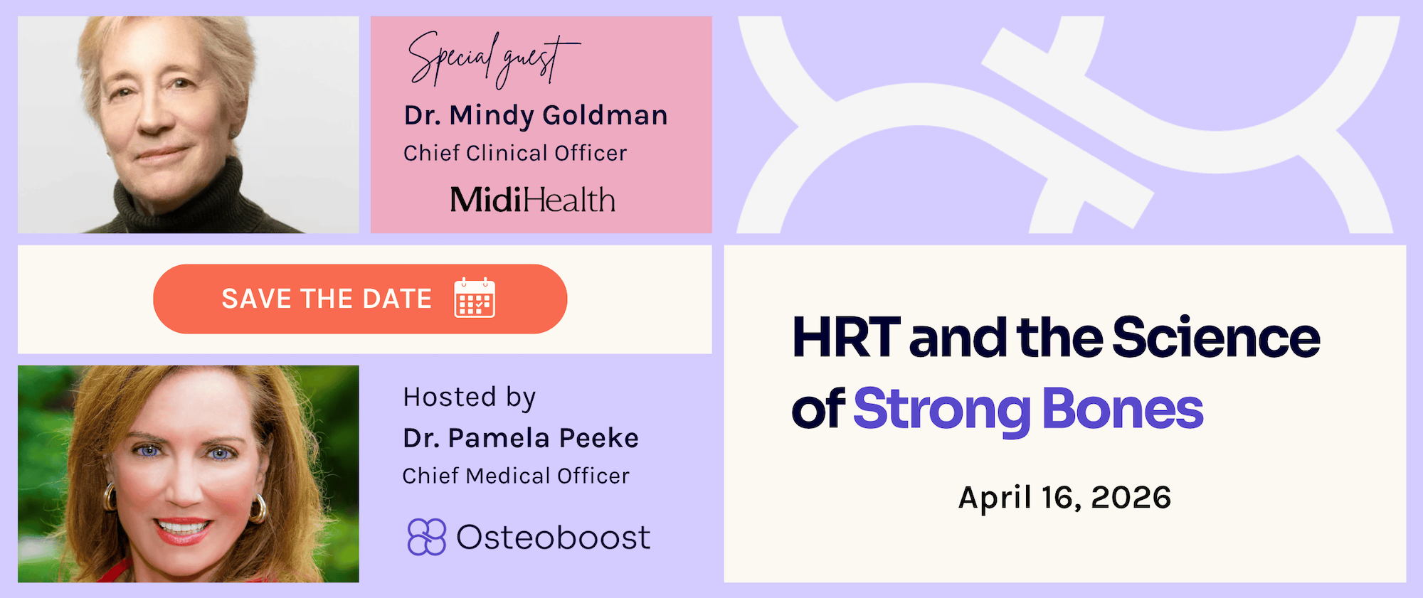 REDWOOD CITY, Calif., April 13, 2026 — Osteoboost Health, Inc. and Midi Health will co-host a free public webinar, HRT and the New Science of Strong Bones, on Thursday, April 16, 2026, at 2 p.m. PT (5 p.m. ET). Hosted by Osteoboost CEO Laura Yecies and moderated by Osteoboost Chief Medical Officer Dr. Pamela Peeke, the one-hour live event will feature Midi Health Chief Clinical Officer Dr. Mindy Goldman in a fireside chat on the latest science behind how hormone replacement therapy (HRT) affects bone density during perimenopause and menopause.